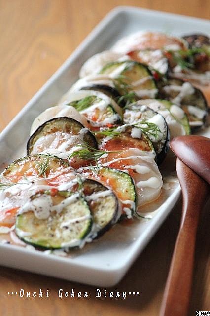 サラダなども真っすぐ並べると、少し雰囲気が変わって楽しいです。