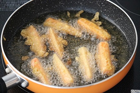 3.フライパンに1~2cm程の高さの油を入れて熱し、