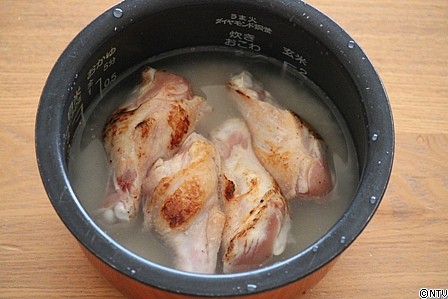 もちろん土鍋でも作れますよ。普段のご飯を炊くように、鶏肉をのせて炊けばO.K.です。