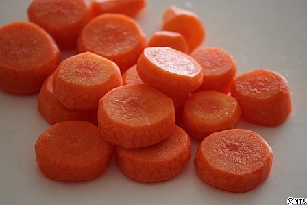 1.にんじんは皮を剥いて厚めの輪切りにする。