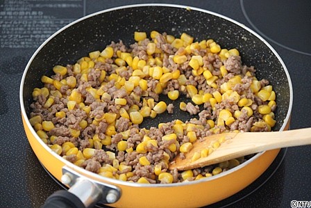 ご飯が進みそう!とうもろこしのそぼろ炒め、とっても美味しそうですね。