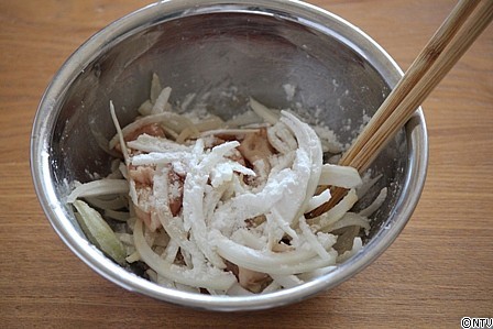 玉ねぎと一緒に揚げるんですね~。美味しそうです(*^^*)