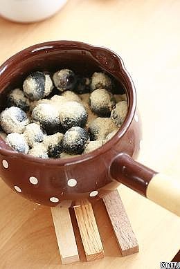 1、ぶどうはさっと洗ったら小鍋に実を入れ、砂糖をかけて水分が出るまで少し置く。