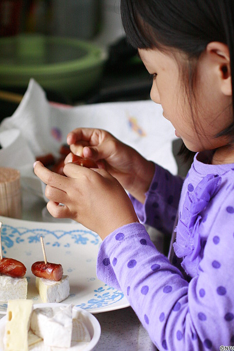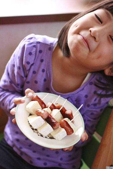 ピンチョスみたいにしたくて、かわいいピックを...と、探している間に、ひめは待ち切れず楊枝に刺してました^^;