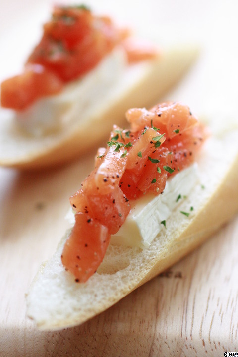 シンプルなパン(バケットやカンパーニュなど)に好きな具材を乗せるだけの、