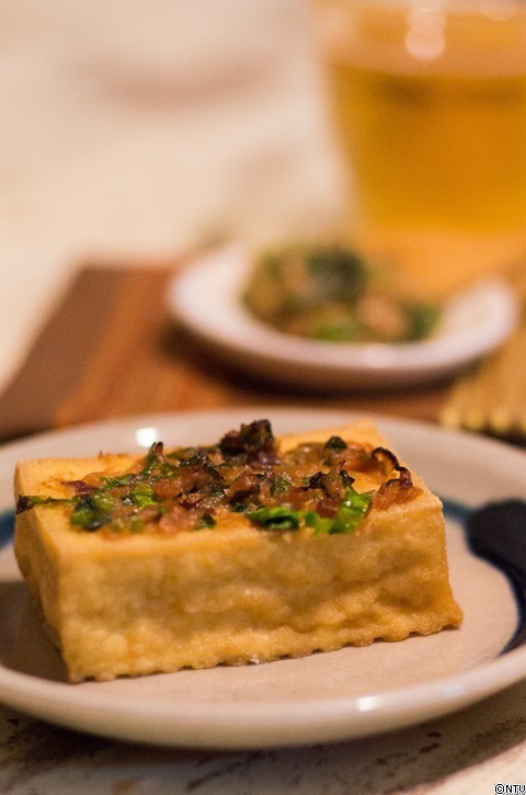 行者にんにく味噌乗っけ、厚揚げ。こちらは糖質オフメニュー。