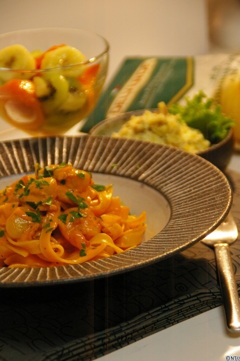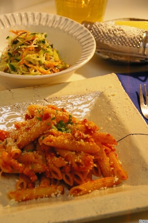 その横にあるのは、さつまいもと胡桃のサラダ。 茹でたさつまいもは皮をむいてマッシュし、 多めのクリームチーズと少々の調整豆乳で好みの具合にしっとりさせたら、 砕いた胡桃を加えて混ぜるだけのお手軽サラダです。 どの材料も適量で作っています(笑)そして昨日はアマトリチャーナの確認!