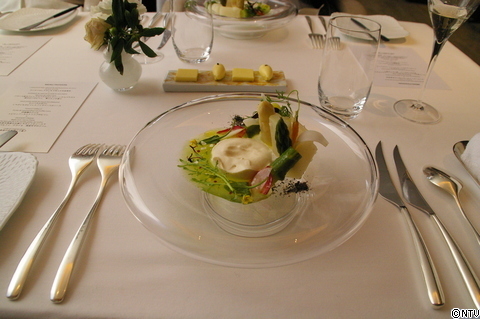 続きまして、「フランス産ホワイトアスパラガスとグリーンアスパラガス 根セロリのピュレ 青りんごの香り」