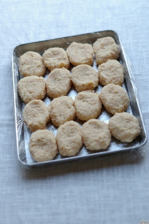 3. 手に一口大くらいの2をのせ、ナゲットの形に成型します。