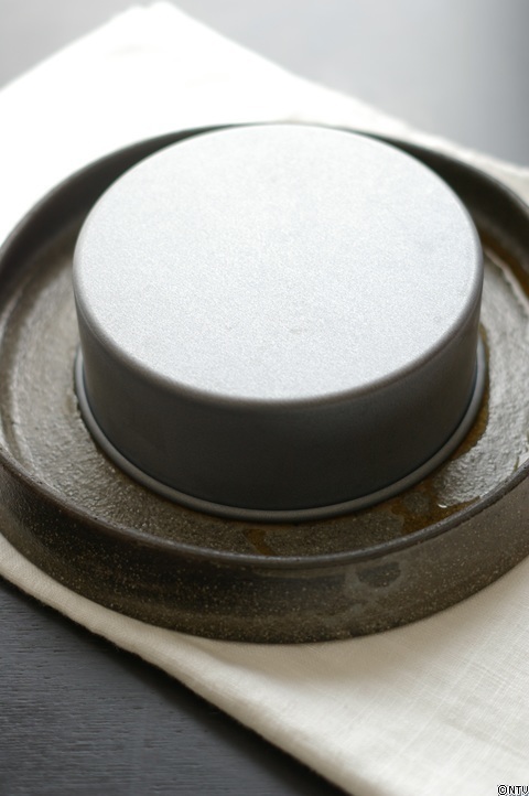 網を置くのは、熱い天板に直接プリンの型を触れないようにするため。