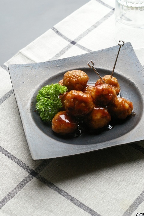 (タレをフライパンで作る場合のみ、肉団子にラップをふんわりかけてください)