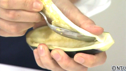 皮の部分は表面に薄くサラダ油(分量外)をまぶして耐熱皿にのせてラップをし、電子レンジ(600W)で2分加熱します。