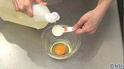 揚げ物をする時、卵の黄身と白身をしっかり溶いてから具材につけないと、揚げ終わった時、揚げ物の具材と衣が剥がれやすくなってしまうんです。しかし、サラダ油を卵に加えると…油が黄身のたんぱく質を崩し、黄身の脂肪分となじむことにより、白身と混ざりやすく卵液がクリーミィーに!したがってこの卵液で揚げ物を作ると、衣もはがれにくくなり美味しい揚げ物が作れるというワケなんです。