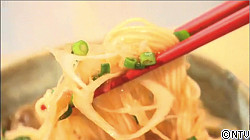 レシピ審査に自慢のレシピを9つもエントリーしてくれた脇田さん。その中から2人の審査員が選んだレシピが今回挑戦してくれた「ピリ辛アサリトマト麺」。実は脇田さん、大のお酒好き♪このレシピはお酒の〆にもピッタリなんだそうです。審査員の先生が注目した点は…「アサリのスープに乾麺をそのまま入れて煮てしまう」というところ。こうすることでそうめんの塩分がそのまま調味料となり、またそうめんのでんぷんがスープのトロみとなり、麺とスープが絡みやすくなるそうで、料理をよく知っている人ならではの調理法、と高く評価していました。残念ながら一次予選敗退となりましたが、このレシピ、フライパン一つで簡単に出来るのでぜひ作ってみたいですよね。