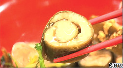 とっても穏やかにお話される橋本さん、石川県金沢市からの出場です。橋本さんといえば、「昆布!」。橋本さんにとって昆布はファストフードのようなものなんだそうです。昆布はダシをとるもの…というイメージがあり、どうやって料理をしたらいいのか?と悩んでしまいますが、さすがは昆布使いの達人!「昆布の美味しさを最大限に引き出したレシピ」で挑戦してくれました。また地元金沢の名物加賀レンコン、すだれ麩なども使いました。出来上がりはまるで料亭に行った気分を味わえるような彩り豊かな一品。審査員の先生方も「とっても上品!」橋本さんを現しているかのようにやさし〜いお味だったようですね。残念ながら一次予選敗退となりましたが、昆布の上手な使い方など教えて頂きました。これからも色々な昆布料理を生み出し、またぜひ挑戦してください!