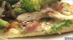 (2)の具をぞれぞれが均等になるよう(4)にのせ、予熱した230℃のオーブンで9分程焼いたら出来上がりです。お好みでラー油をかけて頂きます。