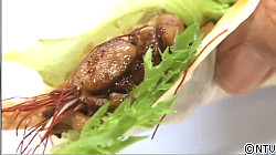 内科医として働く傍ら、息子さんのキャラ弁作りにハマっているという新見さん。医師ならではの発想でオブラートや薬用カプセルなどをなんと料理に使用しました!オブラートは茹でた餃子の皮同士がくっつかない用に…と皮の間にはさみ、また薬用カプセルは食べるラー油を入れてからスープに加え、食べているうちにカプセルが徐々に溶けていくことで味を変化させる…という驚きの技を披露してくれました。この斬新なアイディアには審査員の先生方もびっくり!また二枚重ねにして餃子の皮を茹でたことで、モチモチ感がでて、炒めた鶏肉とパリパリに揚げた鶏皮との相性も抜群!試食した審査員の先生方から思わず笑顔がこぼれていましたね。見事一次予選通過です!おめでとうございます!!次はどんなレシピが登場するか楽しみですね。