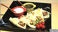 「豚バラ肉の春巻かないクレープ 2種類のソース添え」