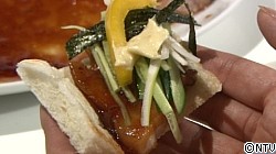 地球一周の船旅、ワーキングホリデーにと海外を旅行し、世界の料理を食べ尽くしてきたという木山さん。今回ご主人が「これは売れる!」とほめてくれた料理での挑戦です。短時間で煮豚に味をしみ込ませることが難しいため、タレを濃い目に作ったり、より肉を柔らかく感じさせる切り方をしたり…としっかり計算されたレシピでした。わさびマヨネーズも良いアクセントとなり、審査員からも大絶賛でしたね!
