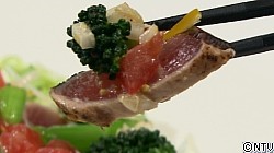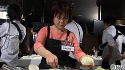松根さんは福島県からの出場者。最近福島は、原発の放射能汚染による風評被害にあっている…とおっしゃって、「福島には美味しい魚や野菜がたくさんあるということを全国の人に伝えたい…」また「頑張っている姿を福島のみなさんに見せて勇気づけたい…」との想いで本大会に参加してくれました。松根さんは大型の食品スーパーで簡単で美味しいレシピを提案するクッキングサポートのお仕事をされているそうです。今回はそこで評判のよかった、かつおのサラダを作ってくれました。ドレッシングの絶妙な味付けに審査員の先生方からもかなりの高評価でした!松根さん、これからも福島産の素材を使って美味しいものを沢山作ってくださいね!!