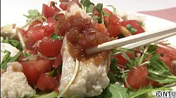 「節約! 美味しい!!」をモットーに家族3人分のおかずを1食300円で作ることを目標にしているという河野さん。頂けるものは何でも無駄にはしません…とその通り、鶏皮を焼いた油、肉のゆで汁までもをフル活用したプレートを作ってくれました。3種のソースの〈ソース1〉はお子さんが、〈ソース2〉はご自身が、〈ソース3〉はご主人が大好きなんだそうです。家族愛の詰まったレシピだったんですね!