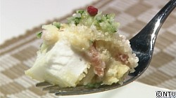 40歳で料理に目覚めたという丸上さんですが、とっても手際よく料理を作っていました!いずれは地元、広島の因島でオシャレなお店を開きたい…とおっしゃるだけあり、今大会では審査員の先生方も驚くオリジナル料理での挑戦でした。はんぺんやチーズなどの白い食材でふわふわ、とろとろ、かりかりの食感を作り出しました。また、盛り付けもとってもキレイでしたね。