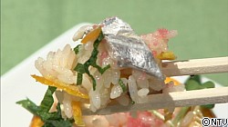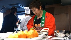 みかん農家の杉本さん、鮮やかなオレンジ色のハッピを着用してのチャレンジです!持参したデコポンでお寿司を作ってくれました。デコポンの果汁はもちろんのこと、皮を器にしたり…とデコポンをあますことなく活用しました。酸味をプラスする為に入れたレモン汁は、その時々のデコポンの糖度によって加えるんだそうです。太刀魚もデコポン果汁でマリネにしたため、全体的にとても優しい味のお寿司に仕上がりました!