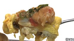 新食感! もちもちオムレツに魚介の旨味タップリの餡がかかりました!
