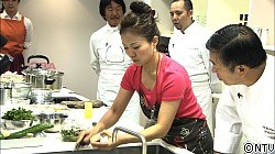 洋食屋のコックさんだった今は亡きお父さんが料理の原点…と語る藤原さん。その料理人魂を受け継ぎ、今回は「ハーブでそうめんを頂く」という新しい発想の料理でした。ご自宅でも30種類ものハーブを育てているんだそうですよ。煮出したハーブは麺に絡む様に…とトロみをつけたり、食べるときに生ハム同士がくっつかないよう事前に油を塗ったり…と食べる人の事を考えた工夫はやはりお父さん譲りでしょうか…。審査員の先生も「それぞれ入っている具材が全部、きちんと役割を果たしていて非常にバランスのよい料理」と高評価でした。一次予選同様、食材の入れ忘れがあり慌てる場面もありましたが、これもまた藤原さんらしくチャーミングでしたね。見事準決勝進出です!