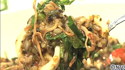 (4)に細かく切ったのり、さきイカ、海苔の佃煮を加えて混ぜ合わせます。
