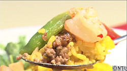 「大学は補欠合格、就職も最後の一社で採用になりました」とおっしゃる村松さんこのレシピの女王一次予選も、開催日ギリギリになって辞退者が出た為、急遽繰り上げでの出場。そしてなんと! 一次予選ステージAにおいても第5位にて通過!ギリギリにはめっぽう強い村松さん、今回挑戦してくれたレシピはえびや野菜を使ったエスニック炒め。香辛料で豚ひき肉、エビ、スナップえんどうを炒め、オイスターソース、ナンプラーを使った特製調味料で味付けしパンチをだしました。さらにはチリソース、またレモン汁を多めに加えたことで全体の味のバランスもUP!炒めたクミンシードなどを加えたターメリックライスとの相性も抜群だったようで「とにかく味がよい!いうことなし!」と審査員の先生方のお箸も止まらない様子でした。彩りも鮮やかな一品でしたが、残念ながら今回惜しくも二次予選敗退となってしまいました。毎回物怖じせず堂々とそして淡々とお料理されている村松さんの姿はカッコ良くとても印象的でした。その一方で帰り際「やっぱりテレビ的には今回もギリギリで合格しなきゃって感じでしたよねっ(笑)」と、おちゃめな一面も…。これからも魅力的なレシピをたくさん作っていってください!