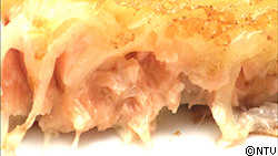家族の熱い声援が途切れぬ中、まず長瀬さんの料理は『くねくねうどんの鶏つくねバーガー』。パンの代わりにうどんを高温で揚げ、外はカリッと中はモチッとさせました。さらにつくねには山くらげのお漬け物を混ぜ、軟骨のようなコリコリとした食感に。お子さんたちが一番好きな、うどんとハンバーガーを合体させた、長瀬家の集大成レシピで女王の座を狙いました。