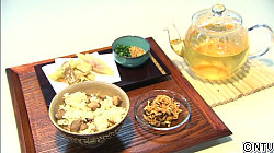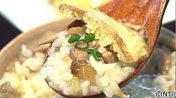 鶏ごぼうご飯をお茶漬けに!天ぷらを薬味にして頂きます!!
