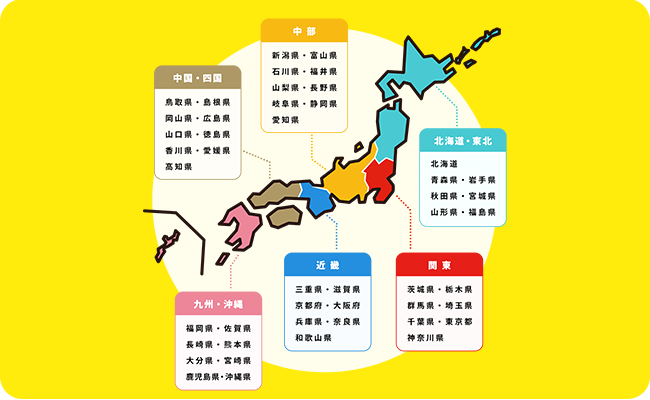 全国を6ブロックに分けて、