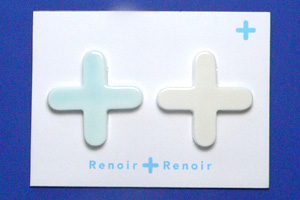 本展のロゴマークを模った珍しいプラス型の箸置き。水色と白の2個セットでお手頃な価格が嬉しい。