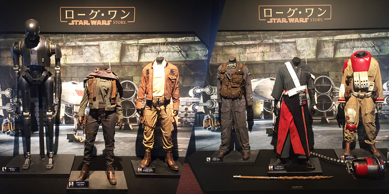 - 映画『ローグ・ワン/スター・ウォーズ・ストーリー』に登場するキャラクターたちの衣装や等身大フィギュアの展示。