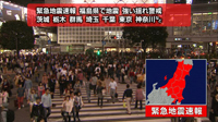 「関東地方に強い揺れ」が予測された場合に、速報画面が入ります。強い揺れ(推定震度4以上)の地名を出すとともに、必要に応じて地図(推定震度4以上は赤色)も表示します。