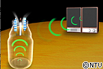 スピーカーから出る音、つまり空気の振動でビンの中の空気を振動させ、風がおこって火が消えます。