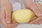 ジャガイモは茹でられて体積が膨張します。その後、氷水に浸けることで皮が縮んで実との間に隙間ができ、綺麗に剥けるのです。