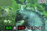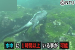 ガラパゴスウミイグアナは海を泳ぐことができます。海草をエサにしていて、水中に1時間以上いる事が可能です。また、強い海流の中で岩にしがみついて食事をするために爪が長く強く進化しました。