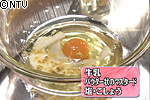 使う卵は黄身1個分に対して白身は2個分加えます。それに牛乳、パウダー状のマスタード、塩、コショウを加えて混ぜます。