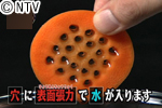 にんじんにたくさん穴を開けたもの、これを水につけて穴に水が入った状態。これで物を覗くと、どう見えるでしょうか?