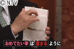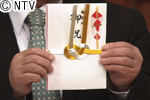 また包み方ですが、幸せが入ってくるように下側のほうを上にします。逆に香典の場合は悲しみが流れていくように、上側を上にして包みます。