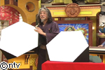 ちなみに、立方体の各面を四角い穴でくり抜いた立体の、同じように各辺の真ん中の点を結んだ線で切断すると、穴がダビデの星のようになります。