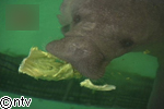 上の画像でマナティが食べているのはキャベツです。この他にもかぼちゃなど多くの野菜を食べ、1日に30キロ以上食べます。