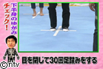 目を閉じて30回足踏みをしてみましょう。骨盤が曲がっていると、最初の場所から曲がっている方向に動いてしまいます。自分でやってみましょう。