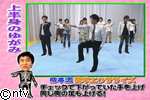 目を閉じて手を横に広げ、頭の上で手を叩き、胸元へおろします。より下がっている方の手の方が下がっているということです。