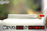 このティーポットは、お茶を注ぐ時に垂直に傾けてもフタが落ちません。傾けてもフタがひっかかるようにできています。