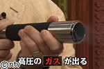 筒の中には針があって、針の先端からは高圧のガスが出るようになっています。これでワインボトルの中の気圧を上げて簡単に栓が抜ける仕組みになっています。