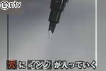 穂先部分は、1週間塩酸に浸けます。すると穂先部分は塩酸で溶かされ、小さな穴がスポンジのように無数に空くんです。そこにインクを注入すると、染み込み、筆ペンの穂先となるのです。